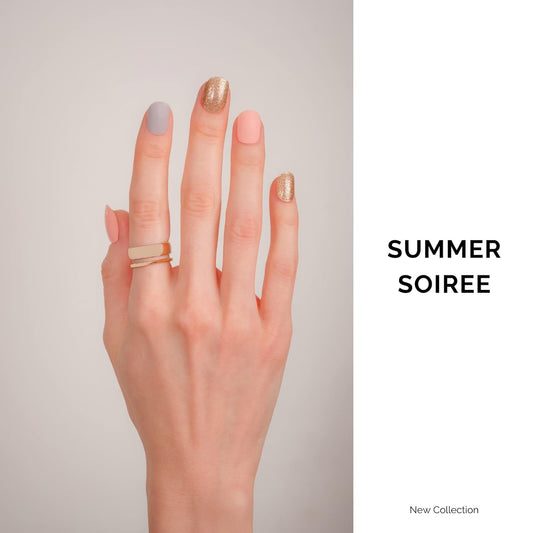 NAILOG Semi Cured Gel Nail Strips 34 pcs, Buy 2 Get 1 UV Lamp, Salon-Quality Gel Nail Stickers, Semicured Nail Wraps with Soft Gel Finish | Summer Soiree