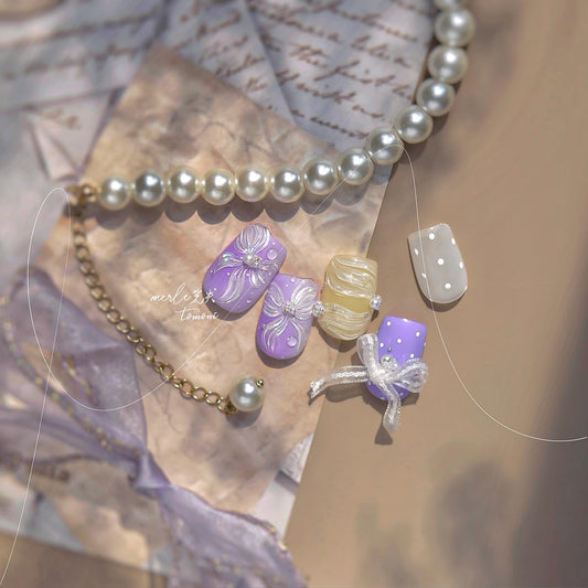 Purple Nail Stickers Irregular Shape Nail Art Decals Golden Edge with Design Nails Art Decals Self Adhesive Ombre Nails Decal Supply 5D Embossed for Women Girls Kid Manicure DIY Charms Decoration