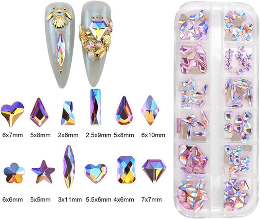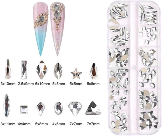 120pcs Flatback Rhinestones Glass Charms Diamantes Gems Stones for Nail Art Box Multi Shapes Crystal