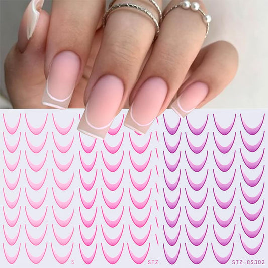 6 Sheets French Tip Nail Stickers for 3D Self-Adhesive Gradient Decals - Colorful Stripe Tips Supplies for DIY Art Decorations Tools