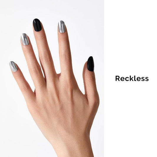 Semi Cured Gel Nail Strips - NAILOG 34 Pcs Silver Black Nail Stickers Extra Long Wraps with Glossy Gel Finishing for Autumn Winter, Reckless