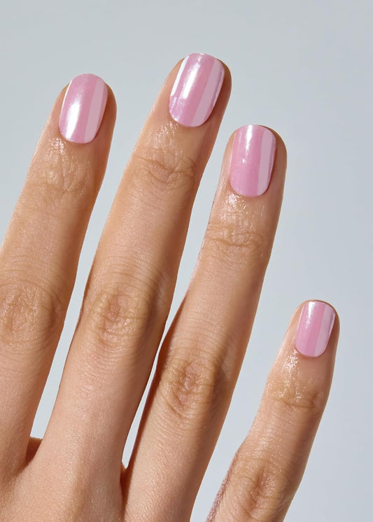 Semi Cured Gel Nail Strips-Multi-Size Semi Gel Press On Nails Stickers Sports & Shower Safe,Glossy Press Ons for Mom & Busy Lifestyle Works with Any UV/LED Lamps(Pink)