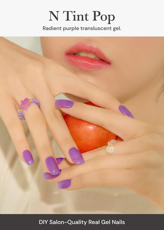 ohora Semi Cured Gel Nail Strips (N Tint Pop) - Purple, Tint, Works with Any UV/LED Lamps, Salon-Quality, Long Lasting, Easy to Apply & Remove - Includes 2 Prep Pads, Nail File & Wooden Stick
