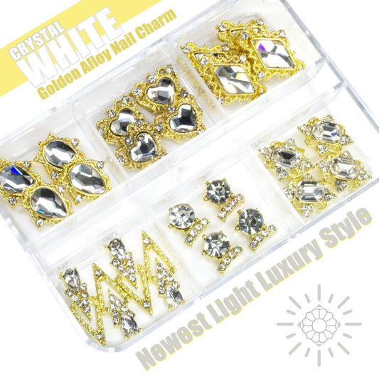 24pcs Crystal Clear Nail Rhinestones Luxury Nail Charms Crystal White Heart Charms for Nails 3D Big Nail Gems Diamonds Jewelry Stones Alloy Nail Art Studs Nail Art Decor w Box for Arylic Nails Crafts