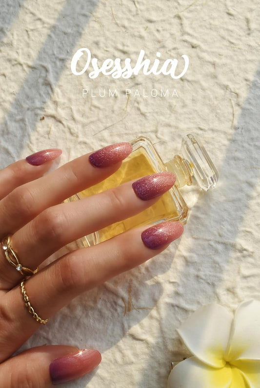 Semi Cured Gel Nail Strips, 20 pcs Nail Wraps, Glaze Stickers, Salon Quality French Manicure, Full Decal Gel Polish Strips, Long Lasting SCG, Easy on, UV Required (Plum Paloma)