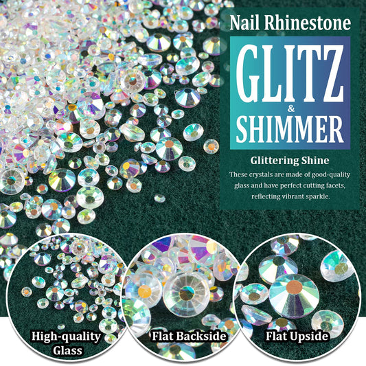 4080Pcs Crystal AB Nail Rhinestones 1.5-4mm More Quantity Glass Iridescent Flatback Gems for Nails Round Beads Stones Diamonds jewels Nail Art Charms for Nails Face Eyes Makeup Tumblers Crafts
