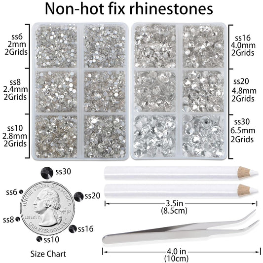LPBeads 6000 Pieces Clear Non Hotfix Rhinestones 6 Sizes Round Crystal Glass Flat Back Rhinestones with Tweezers and Picking Pen for Nail Art Crafts Clothes Bags DIY