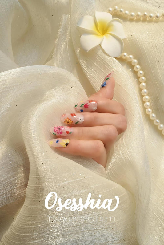 Semi Cured Gel Nail Strips, 20 pcs Nail Wraps, Glaze Stickers, Salon Quality French Manicure, Full Decal Gel Polish Strips, Long Lasting SCG, Easy on, UV Required (Flower Confetti)