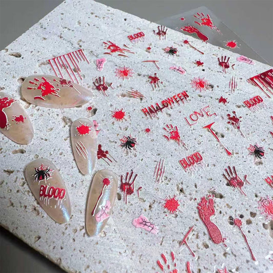1 Sheets Halloween Nail Decals for Nail Art Horror Bloody Handprint Nail Design Sticker Scary Blood Drop Nail Stickers Bloody Footprints Spider Nail Art Stickers for Women Holiday Nails Decoration