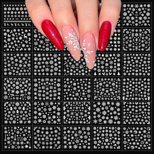 30 Sheet Silver Snowflake Nail Decals - Self Adhesive 3D Nail Art Stickers for Christmas Manicure Decoration