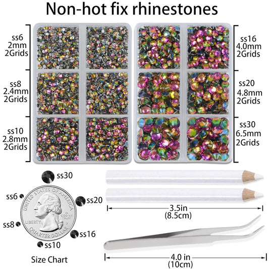 LPBeads 6000 Pieces Vitrail Medium Non Hotfix Rhinestones 6 Sizes Round Crystal Glass Flat Back Rhinestones with Tweezers and Picking Pen for Nail Art Crafts Bags DIY