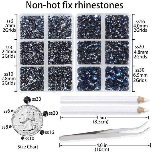 LPBeads 6000 Pieces Lake Blue Non Hotfix Rhinestones 6 Sizes Round Crystal Glass Flat Back Rhinestones with Tweezers and Picking Pen for Nail Art Crafts Clothes Bags DIY