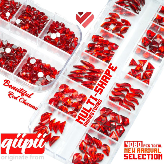 4080Pcs Red Nail Rhinestones Multi Shapes Ruby Rhinestones for Nails 1.5-4mm Crystal Gems Siam Red Round Flatback Beads Glass Stones Diamonds jewels Charms for Nails Face Eyes Makeup DIY Crafts