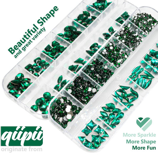 4 Boxes Emerald Green Rhinestones Glitters 24 Shapes K9 Glass Gems Stones Flatback Round Diamonds Crystals Nail Art Charms Supplies for Nails Faces Eyes Makeup Body DIY Crafts Tumblers Bottles