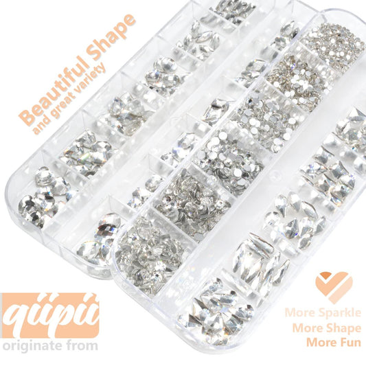 24 Styles Silver Clear Nail Rhinestones Multi Shapes Flatback K9 Glass Crystal White Gems Round Beads Stones Diamonds Jewels Nail Art Charms for Nails Face Eyes Makeup DIY Crafts Clothes Shoes