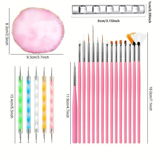 Nail Art Tools 22-piece Set, Resin Nail Art Palette, 2-way Acrylic Silicone Engraving Pen Dotting Pen Tools Nail Art Kit for Nail Art DIY Home Salon Makeup Display Board, pink