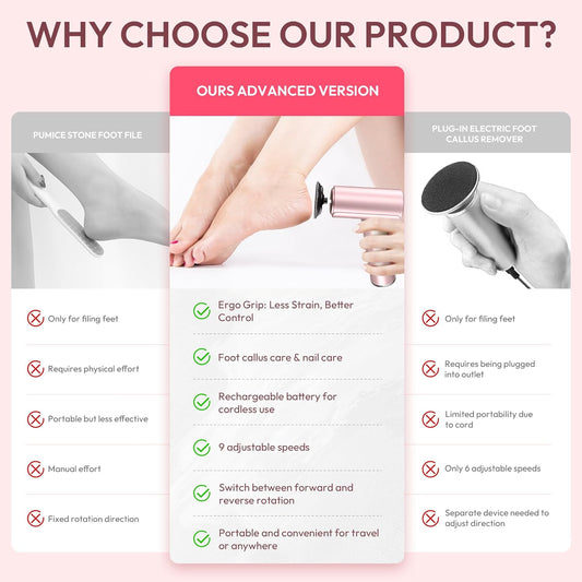 Electric Feet Callus Remover,Electric Foot Files for Men & Women,Pedicure Tool for Feet Dead Skin,Good Gift for Any Occasion,Professional Callus Remover with a Mini,Portable,Lightweight Design