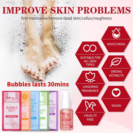 Pedicure Kit Foot Soak Set: Bubble Salt, Sugar Scrub, Massage Mask, Massage Lotion in a Box, 4 Step Foot Spa Kit for Dry Feet,Tired Feet (1 Set Pomegranate)