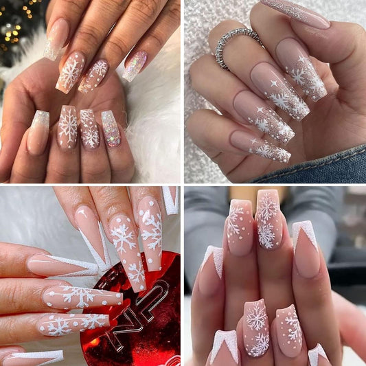 8 Sheets 3D Snowflake Nail Art Stickers Winter Christmas Nail Decals Glitter White Silver Snowflake Nail Stickers Self Adhesive Xmas Snow Nail Design Holiday Christmas Nail Decoration for Women Girls