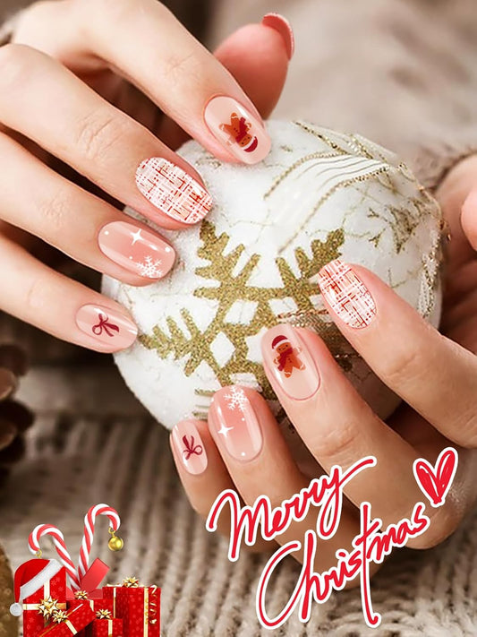 EBANKU 24PCS Christmas Semi-Cured Gel Nail Strips, Bow Tie Adhesive Nail Art Sticker, Waterproof Wrap Stickers With Nail File and Stick