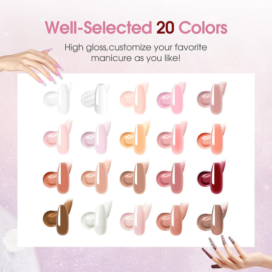 ROSALIND 20PCS Light Pink Nude Poly Nail Gel Kit with Mini Nail Lamp White Brown Poly Nails Extension Gel Set
