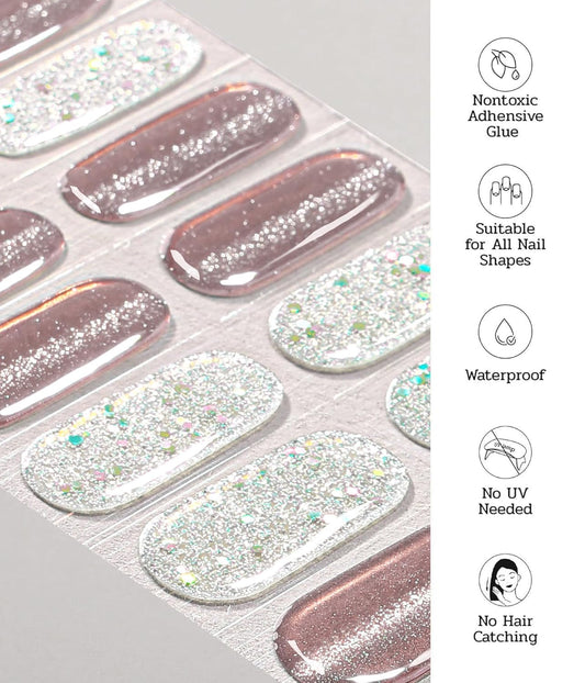 Nail Polish Strips - 22 Pcs Salon Quality Gel Nail Stickers - Long Lasting Wraps (Silver Moon Haze)