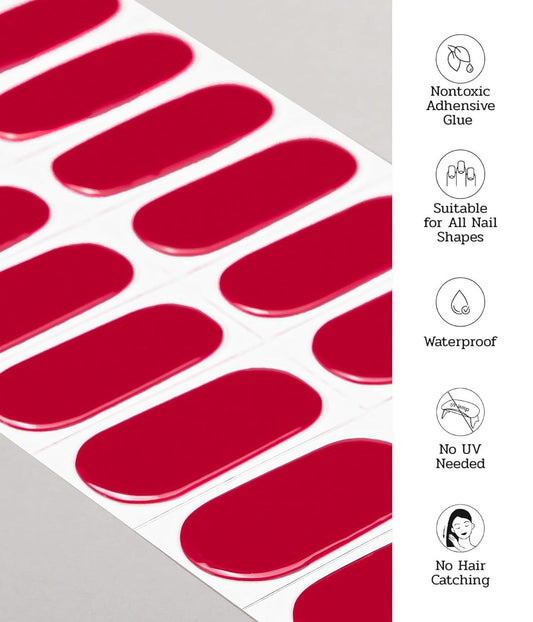 Gloss Nail Strips|Uv Free|22 Pcs,Gel Nail Stickers|Long Lasting Two Weeks and Easy to Apply&Remove|Burgundy