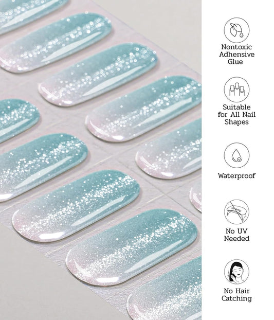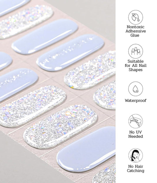 Nail Polish Strips - 22 Pcs Salon Quality Gel Nail Stickers - Long Lasting Wraps (Stardust Blue)