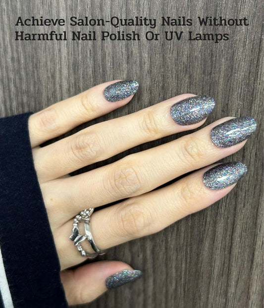 Nail Polish Strips - 22 Pcs Salon Quality Gel Nail Stickers - Long Lasting Wraps (Mystery Black Glitter)