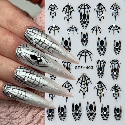 Gothic Nail Decals - 6 Sheets 3D Self-Adhesive Pumpkin Spider Web Wound Nail Stickers DIY Manicure Decoration