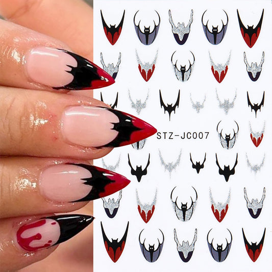 8 Sheets Halloween Nail Art Stickers Decals Colorful Bat French Tip Nails Stickers Black Spider Web Blood Drop Nails Decals Self-Adhesive Skeleton Nail Art Decal for Women Halloween Decor