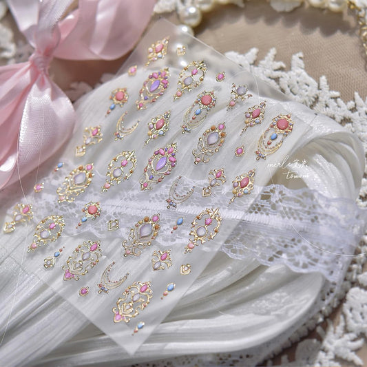 5D Embossed Retro Mirror Nail Stickers Metallic Retro Totem Nail Decals Vintage GEM Necklace Nail Stickers Self-adhsive Nail Decals Luxury Design for Women DIY Manicure Art Decorations 1 Sheet