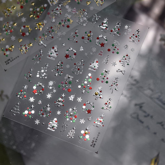 Christmas Nail Art Stickers 5D Embossed Christmas Tree with Colored Lights Designs Nail Stickers Wreath Bowknot Snowflake Nail Decals for Women Girls Winter Holiday Manicure DIY Nail Supplies 1 Sheet