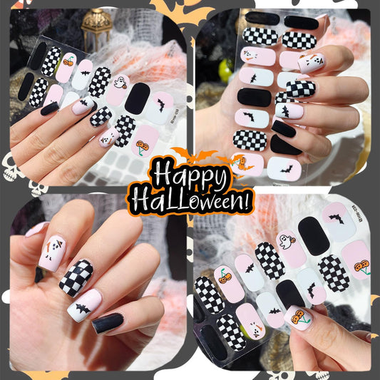 6 Sheets Horror Halloween Gel Nail Wraps Spider Web Flower Ghost Nail Polish Stickers Self-Adhesive Bat Pumpkin Spider Gel Nail Stickers Scary Halloween Holiday Nails Strips for Women