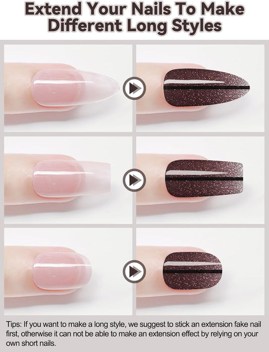 DANNEASY 16 Sheets Nail Wraps for Women Nail Polish Strips Solid Self Adhesive Gel Nail Stickers Gel Strips Nails Art Accessories with 1pc File, Cuticle Stick (Glitter)