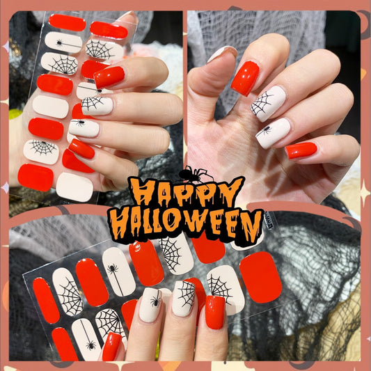 6 Sheets Spider Web Nail Polish Strips Full Wraps Halloween Gel Nail Stickers for Nail Art Self-Adhesive Ghost Spider Black Cat Nail Polish Stickers Pumpkin Bat Gel Nail Strips for Women