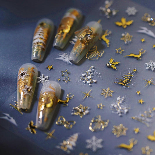 Christmas Nail Stickers for Nail Art Glitter Gold Reindeer Christmas Tree Nail Art Stickers Winter Xmas 5D Embossed Nail Decals 3D Self-Adhesive Nails Supply Manicure Sliders for Nails Decoration