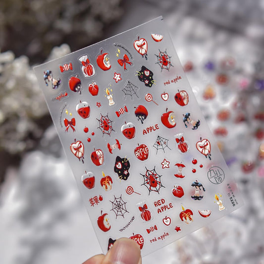 5D Halloween Nail Stickers Red Apple Theme Nail Decals Self-Adhesive Spider Web Gift Candy Browknot Design Thanksgiving Nail for Acrylic Nails DIY Holiday Decoration for Women Kids Party 1 Sheet