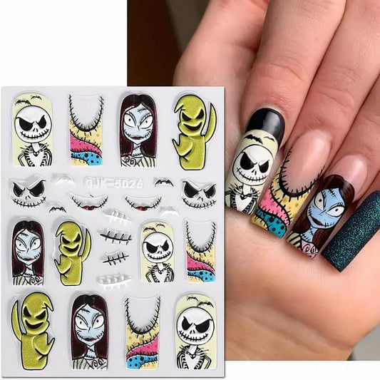 3 Sheets Halloween Nail Art Stickers Decals Pink Skull Spider Web Sugar Skull Nail Decoration 3D Self-Adhesive Nightmare Christmas Stickers for Women Girls