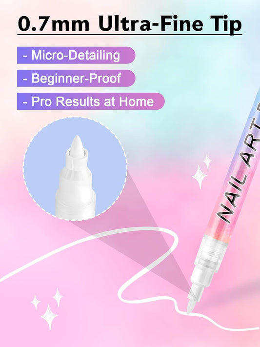 Kalolary 1PCS White Nail Art Pens,0.7mm Nail Polish Pens Quick Dry Long-last Nail Graffiti Dotting Painting Liner Nail Art Markers for DIY Nail Art Design