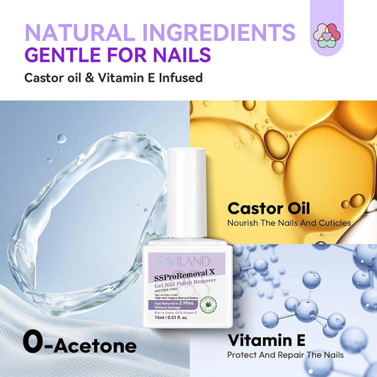 SAVILAND Gel Nail Polish Remover Kit: 2Pcs SSProRemoval X Fast Gel Remover in 2 Mins Castor Oil VE Gel Nail Remover for Acrylic Dip Nails with Complete Removal Tools Home Salon Use Home