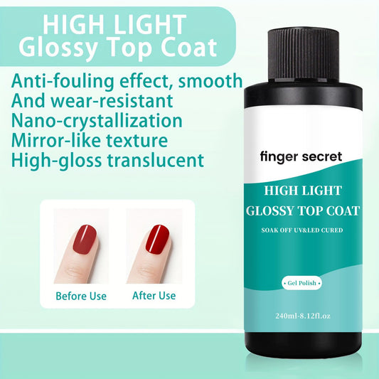 High Light Glossy Top Coat, 240ml/8fl.oz, Gel Polish Nail Polish for Nail Art Manicure DIY