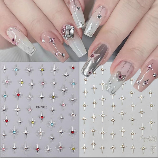Shiny Star Nail Stickers for Nail Art,Glitter Star Nail Rhinestones Design Nail Decals Holographic Gold Silvery Stars Nail Supplies 3D Self-Adhesive Star Sticker Charms for Nail Decoration