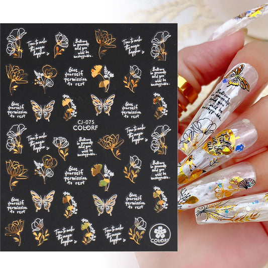 Flower Nail Art Stickers, Luminous Nail Art Decals 3D Self-Adhesive Flowers Fairy Butterfly Floral Leaf Nail Design 6PCS Luminous Nail Art Supplies for Women Nail Decoration