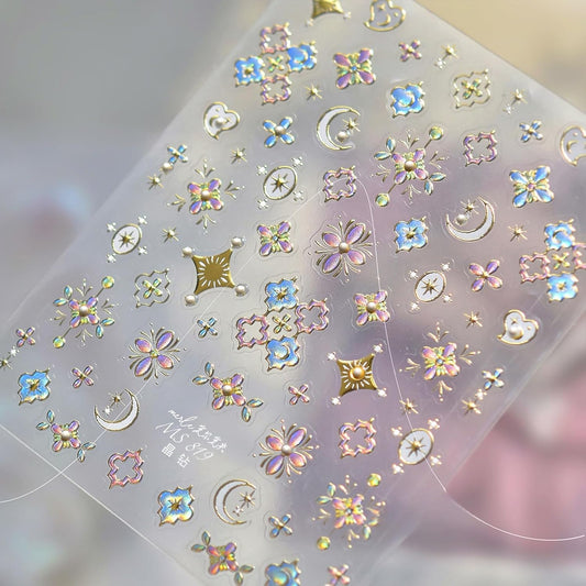 1Pcs Gold Nail Stickers 5D Sun Moon Heart Nail Decals Bohemian Style Nail Art Stickers Embossed Self-Adhesive Sun Moon Nail Decals Bohemia Flower Nails Designs Nails Decoration for Women Nail Supplies