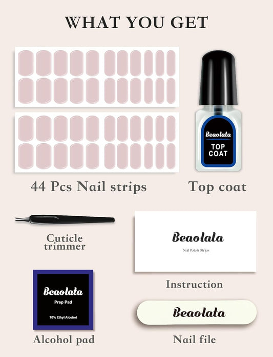Nail Polish Strips, 44PCS Salon Quality Wraps with Top Coat, Long Lasting Gel Nail Stickers for Women Easy Apply& Remove (Sailing on Pink&Gold)