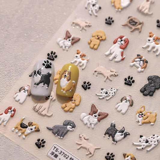 Dedyel Cute Nail Stickers 5D Embossed Cartoon Dog Kawaii Animal Self-Adhesive Nail Decals for Women Girls Kids Nail Art Decoration