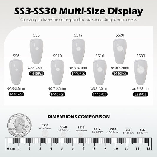 F White Flatback Rhinestones, Glass Rhinestones for Nail Art and Craft, Glue Fix, Loose Crystal Gemstones(F White, SS10, 1440pcs, 2.7-2.8mm)
