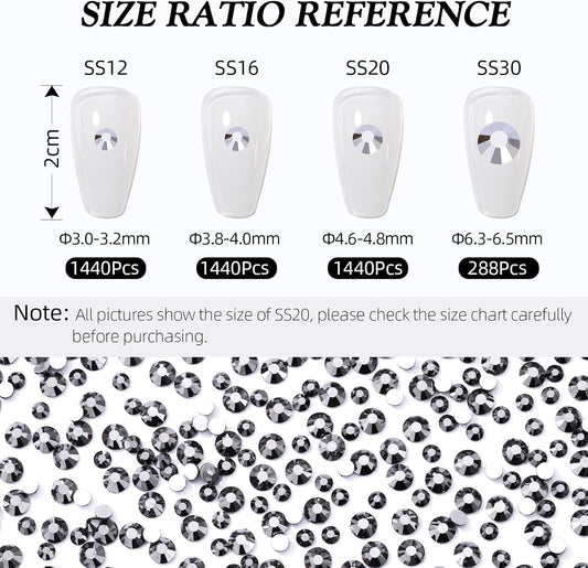 Black Hematite Flatback Rhinestones, Glass Rhinestones for Nail Art and Craft, Glue Fix, Loose Crystal Gemstones(Black Hematite, SS10, 1440pcs, 2.7-2.8mm)