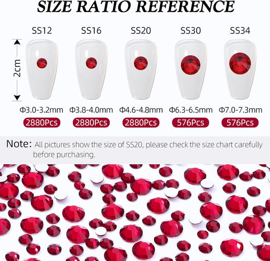 Siam Flatback Rhinestones, Glass Rhinestones for Nail Art and Craft, Glue Fix, Loose Crystal Gemstones(Siam, SS30, 576pcs, 6.4-6.6mm)